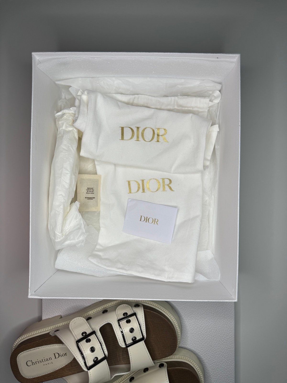 DIOR Women's Cream Calfskin Buckled Lug Sole Diorquake Clog Sandals Size 39