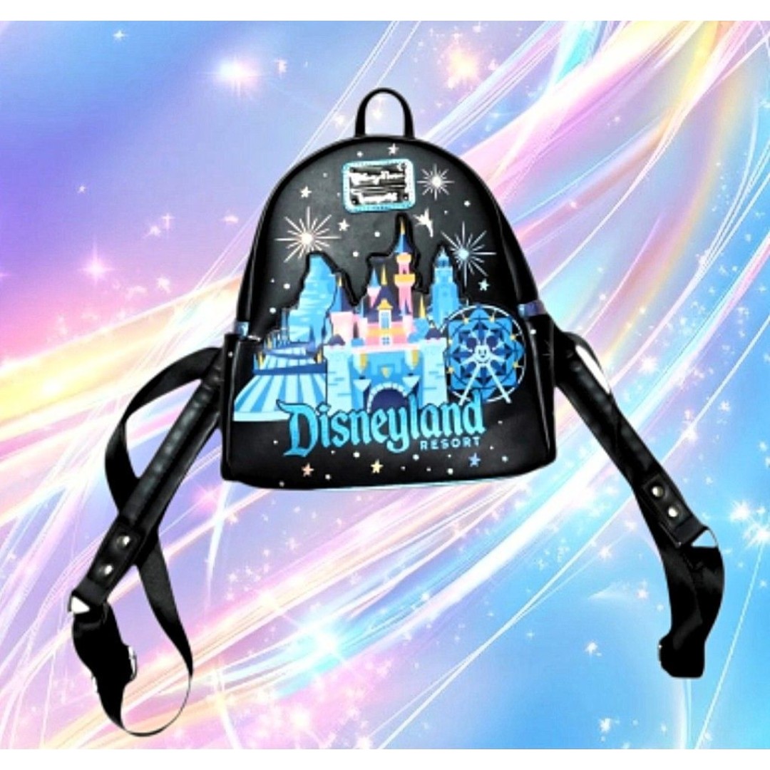 * Front zip pocket with die-cut panel featuring Space Mountain, Matterhorn Bobsleds, Carthay Circle, Pixar Pal-A-Round and Sleeping Beauty Castle