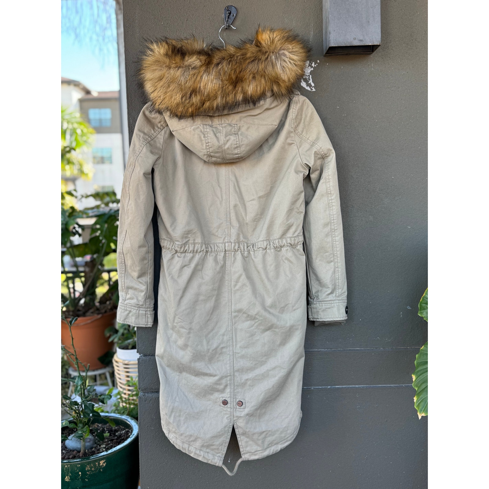 Only XS OnINEW Emma Functional Parka Silver Fox Winter Coat Fur Lined Hood Taupe
